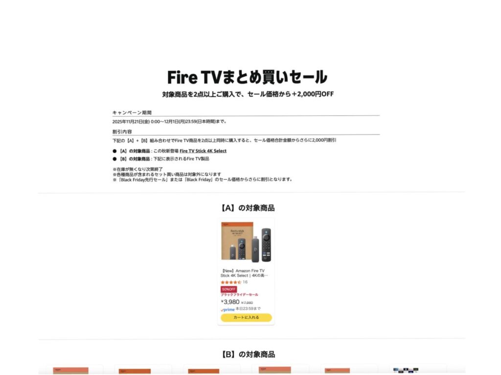 対象のFire TVデバイスを一緒に買うとさらに2,000円引きになるキャンペーンも始まっています!