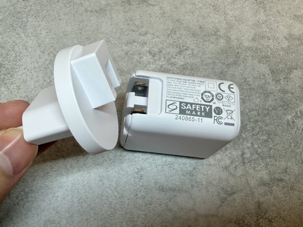 同梱物も特別感満載。最大40W対応のPD電源アダプターと1.5m USB-Cケーブルが付属します。さらに本機は日本以外のApple Storeでも展開されているため、英国・欧州向けのプラグアダプタ まで一緒に入っており、出張や海外旅行でもそのまま使えるパッケージです。