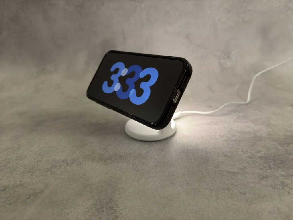 使い方はシンプル。Qi2(15W)対応 の充電ヘッドにiPhoneを吸着させるだけ。ヒンジで角度調整ができるので、通知の確認や動画視聴、ビデオ通話の簡易スタンドとしても活躍します。