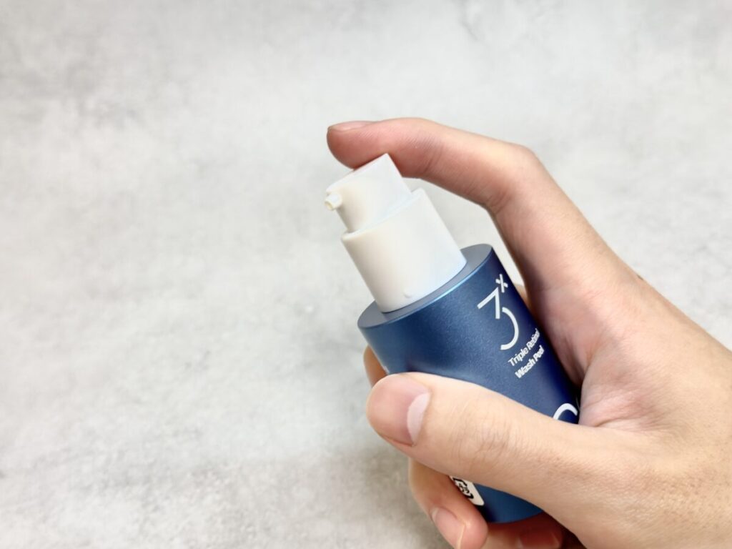 まず、トリプルレチノールウォッシュピールは、洗顔後の乾いた肌に使う“洗い流すタイプ”のピーリング剤です。名前の通りレチノールが配合されていて、古い角質をオフしつつ、肌の代謝をサポートしてくれるというもの。普段の洗顔やクレンジングでは落としきれない角質汚れにアプローチする、いわばスペシャルケア的な位置づけのアイテムです。